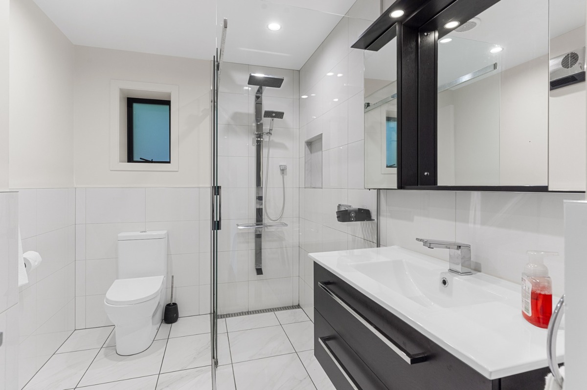 The home is designed for indoor-outdoor living, with decks and sheltered outdoor spaces ideal for entertaining or relaxing. A private guest suite with its own entrance offers excellent flexibility for inter-generational living or work-from-home arrangements.