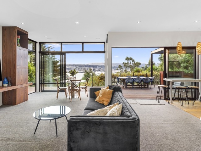 This architecturally redesigned, contemporary home is set in one of Dunedin’s most sought-after suburbs and offers an exceptional blend of space, privacy, and modern comfort. Positioned on a generous, bush-clad section, the property enjoys panoramic views over the harbour and city while maintaining a peaceful, retreat-like feel.