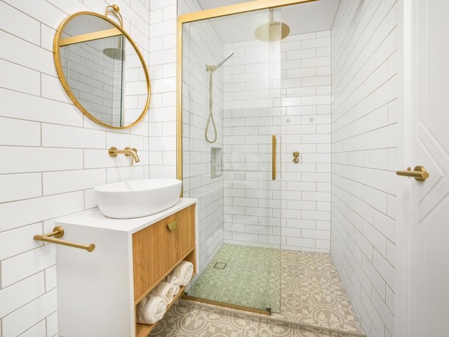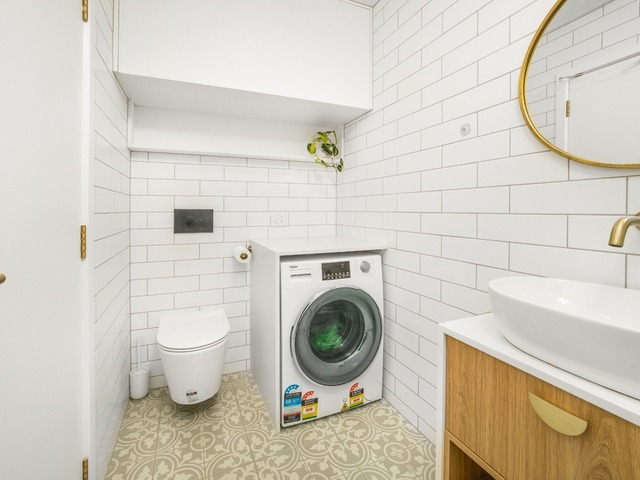 The combined bathroom/laundry is something special fully tiled and lavished in gold fittings with the added luxury of underfloor heating and comes complete with washer/dryer.